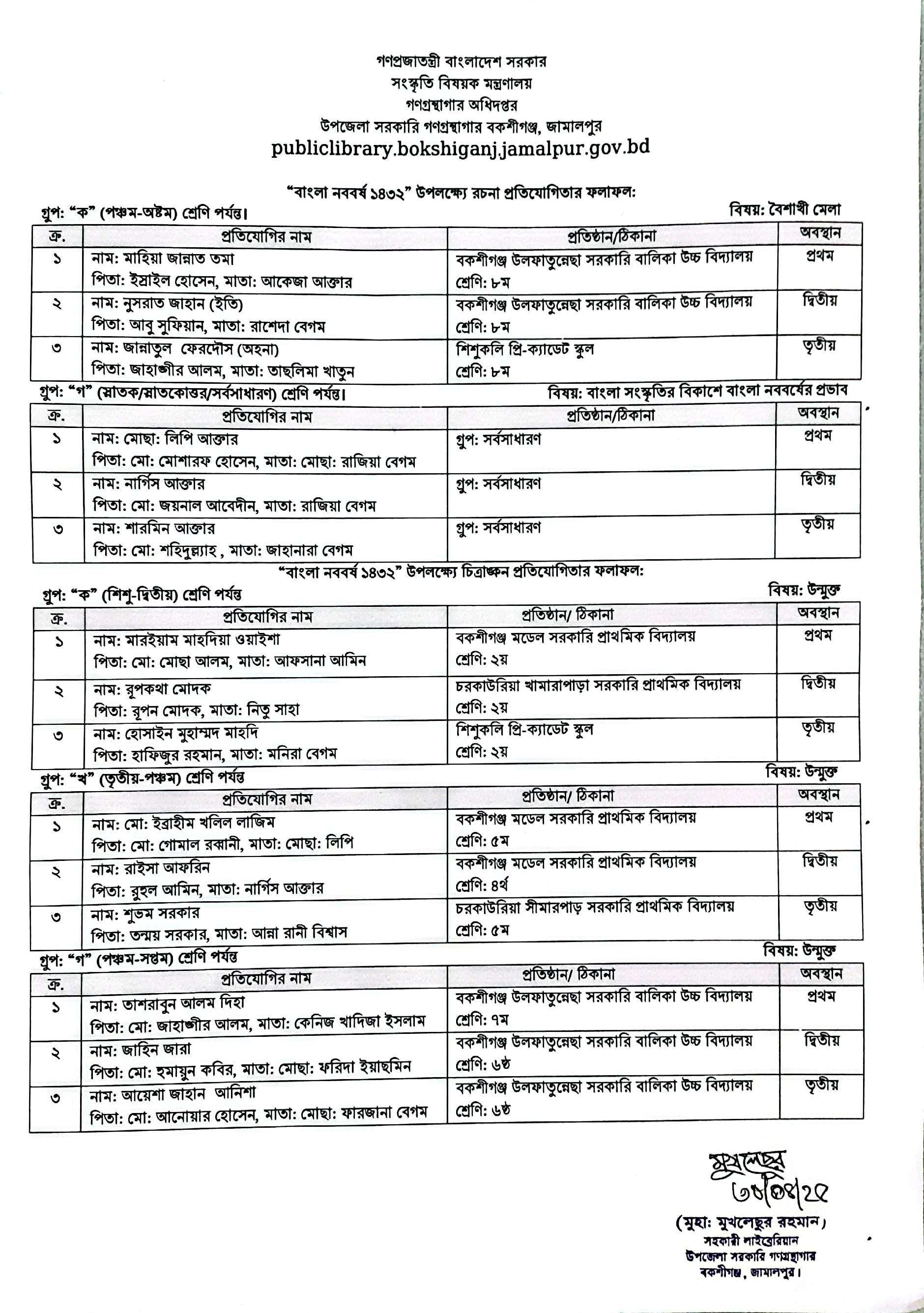 | ১০ | "বাংলা নববর্ষ-১৪৩২" উদযাপন উপলক্ষে বিভিন্ন প্রতিযোগিতার ফলাফল প্রকাশ | | | ৩০-০৪-২০২৫ | দেখুন |