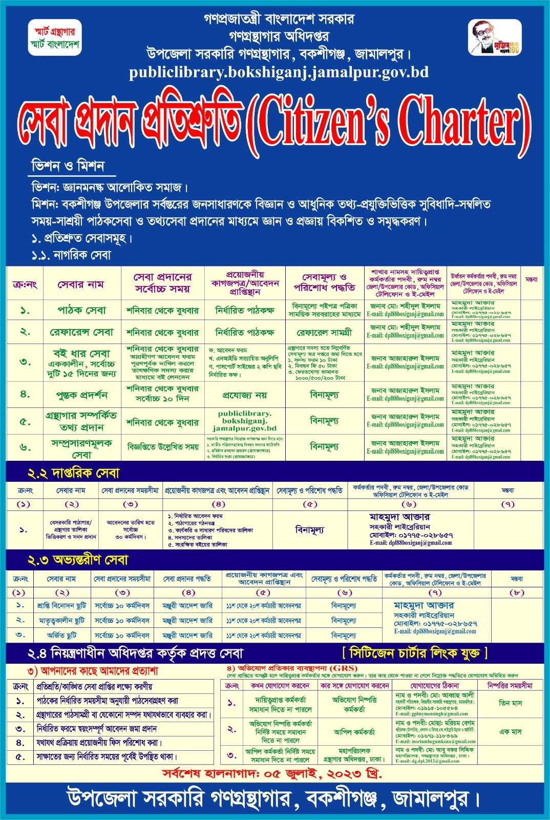 | সেবা প্রদান প্রতিশ্রুতি হালনাগাগাদকরণ (১ম ত্রৈমাসিক) | জুলাই, ২০২৩ খ্রি. |